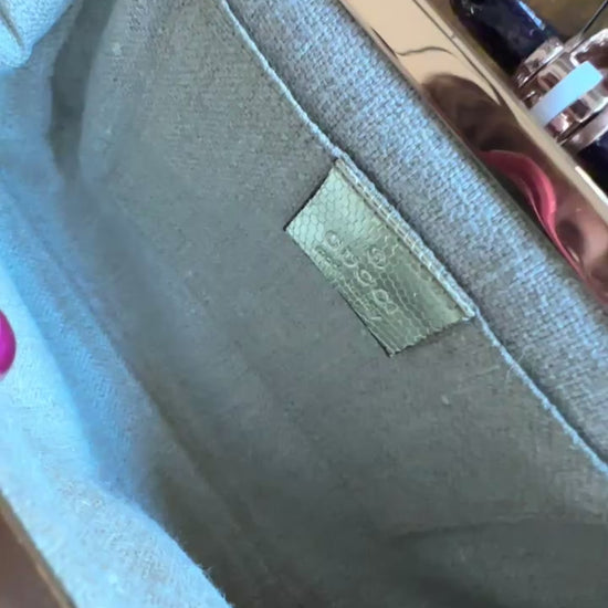 in excellent condition with origanl dustcover. The only show of wear is where the closure hits the lizard you will find this in brand new bags too - it is very minimal. this came from my personal collection and i have never actually used her.